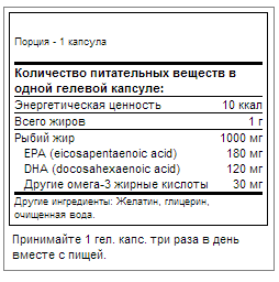 Omega 3 от Ultimate Nutrition, якісні омега-3 жирні кислоти. Риба містить два важливі типи Омега-3 жирних кислот ейкозапентаєнова кислота (EPA) і докозагексаєнова кислота (DHA) Більшість експертів дієтології та живлення зійшлися на тому, що приймання риб'ячого жиру в капсулах несе більше користі, ніж спроби отримання денної норми з риби. Крім омега-3 жирних кислот у рибі, є велика кількість ртуті та інших токсичних речовин, що отруюють організм.